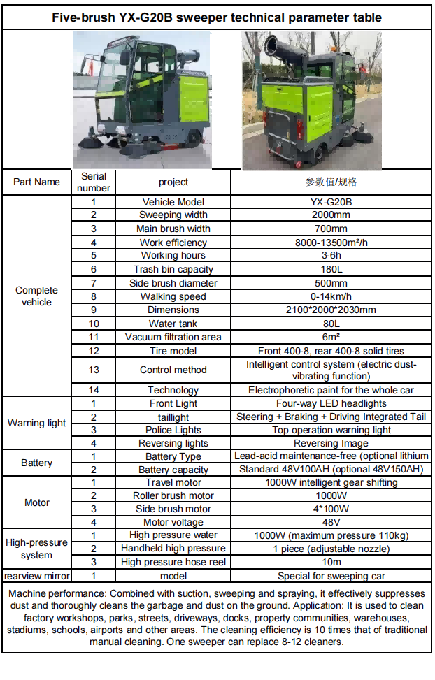 Maskinytelse: Kombinert med sug, feiing og sprøyting, undertrykker den effektivt og renser søpla grundig på bakken.