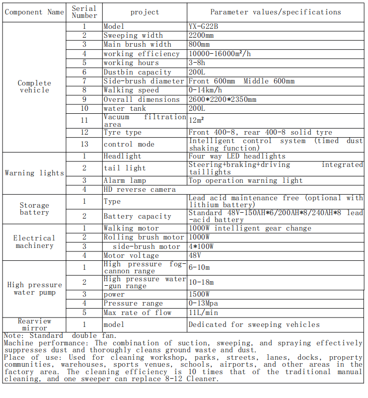 Brukssted: Brukes til rengjøringsverksted, parker, gater, baner, brygger, eiendommer, lager, sportssteder, skoler, flyplasser og andre områder i det fabrikke området. Rengjøringseffektiviteten er 10 ganger for den tradisjonelle manuell-rengjøringen, og en feier kan erstatte 8-12 rengjøringsmiddel.