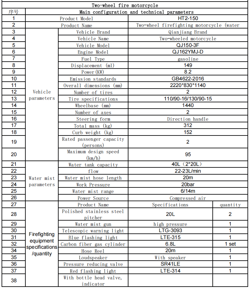 Kjøretøyets kropp er liten (vanligvis omtrent 2 meter lang og omtrent 0,8 meter bredt), og kan lett shuttle gjennom smale gater, smug i gamle byområder, fotgjengergater, naturskjønne fjellveier, urbane landsbyer og andre områder som store brannbiler ikke kan nå, og løser problemet med brannbeskyttelsesdekning i den "siste milen".